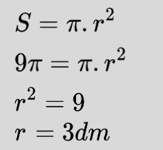 Лицето на кръг е 9.П dm2. Намерете дължината на окръжността, която го определя.