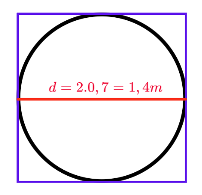 Важно е да направим преценката, че правоъгълникът трябва да е със страни поне 1,4 m, за да може да се изреже кръгът от него.