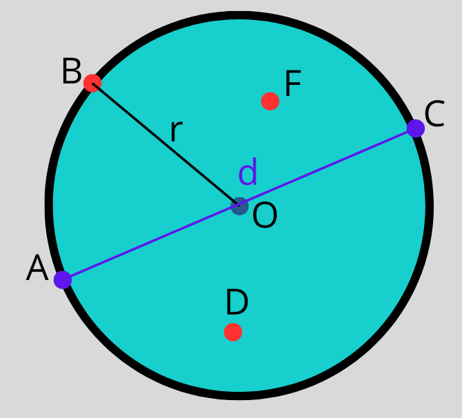 Диаметър на кръга наричаме диаметъра на окръжността (АC = d).