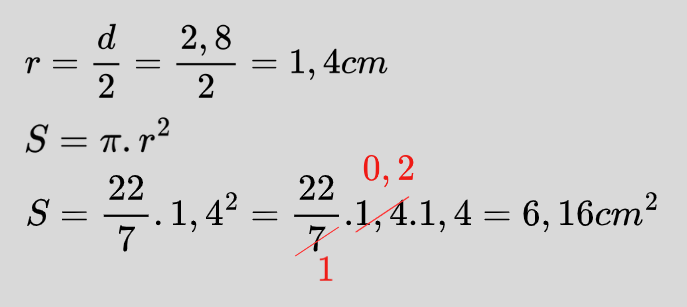 Нека първо намерим лицето на кръга, който е нужен за кройката. За целта ще използваме приблизителната стойност на П като десетична дроб и радиуса ще заместим със стойността му в метри. Достатъчно е да закръглим резултата с точност до стотните.