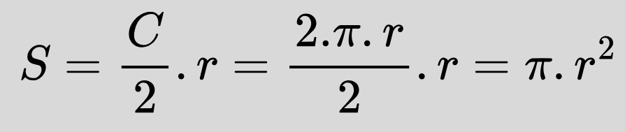Използваме формулата за лице на правоъгълник, за да изведем лицето на кръга: