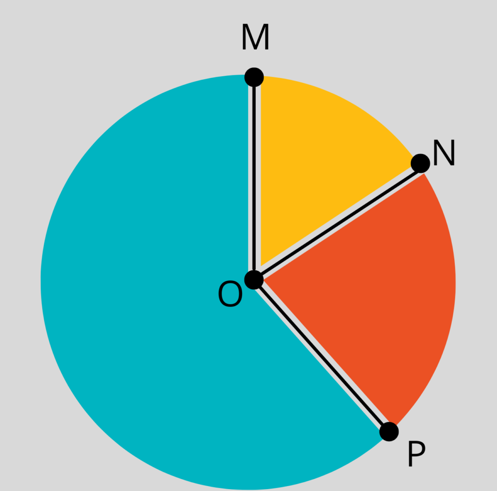 Ъгълът между два радиуса наричаме централен ъгъл. Такива са ъглите МОN, NOP, MOP. Върхът на всеки един централен ъгъл е център на кръга.