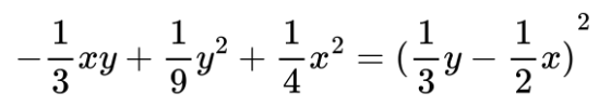 Понякога едночлените не са подредени по познатия ред. Важното е първо да откриете точните квадрати и след това да проверите за удвоеното произведение.
