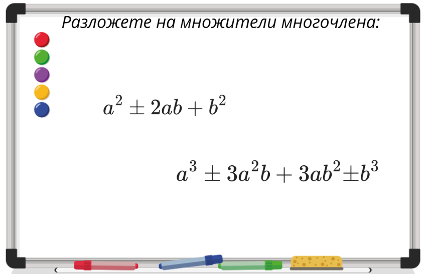 Здравейте, седмокласници! В този урок ще разгледаме как се разлагат многочлени, като използваме още няколко важни формули за съкратено умножение. Ако сте пропуснали първата част, можете да я прегледате, преди да продължите ето тук: Разлагане на многочлени на множители чрез формули за съкратено умножение.