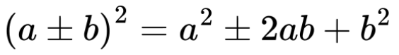Формулата за квадрат на сбор на два израза или тъждеството (a+b)2 = a2 + 2ab + b2